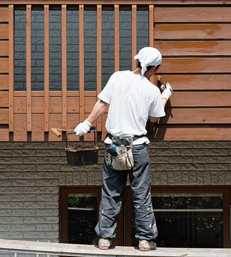 塗料を木部や鉄などの材料に塗り付けて塗膜を作り、表面を保護したり美観を保つために行う工事。